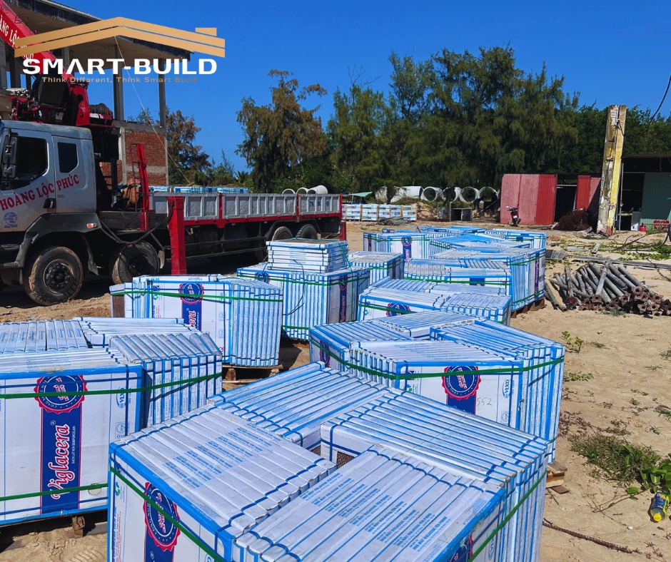 Với kinh nghiệm triển khai nhiều công trình quy mô lớn, Smart Build không chỉ cung cấp vật liệu mà còn đảm bảo giải pháp vận hành hiệu quả cho toàn bộ quá trình cung ứng. Từ việc làm việc trực tiếp với nhà máy, kiểm soát chất lượng đầu vào, đến tổ chức vận chuyển và hỗ trợ tiến độ thi công, mọi khâu đều được tối ưu để mang lại sự yên tâm cho chủ đầu tư. Khả năng cung cấp số lượng lớn trong thời gian ngắn, cùng với mức giá cạnh tranh, giúp Smart Build trở thành lựa chọn phù hợp cho các dự án cần nguồn vật liệu ổn định và đáng tin cậy.