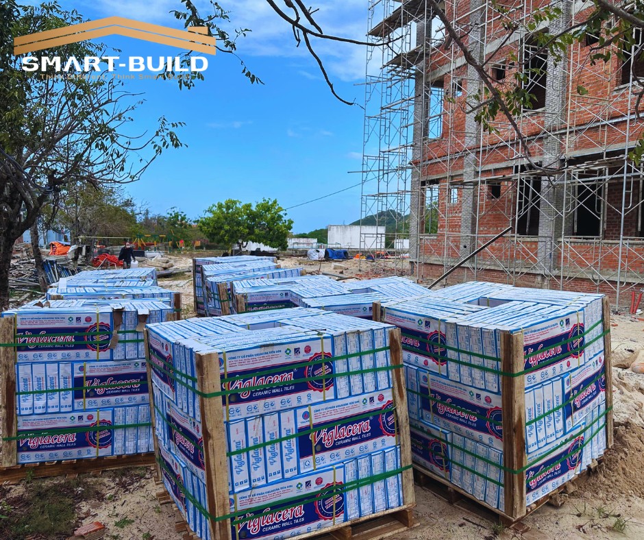 Trong các dự án xây dựng quy mô lớn, việc đảm bảo nguồn vật liệu ổn định, đúng tiêu chuẩn và đúng tiến độ luôn là yếu tố then chốt. Tại công trình Cam Ranh, Khánh Hòa, Smart Build đã cung cấp và triển khai thành công 22.000 m² gạch Viglacera chính hãng, đáp ứng đầy đủ các yêu cầu về chất lượng, thẩm mỹ và hiệu quả sử dụng lâu dài. Không chỉ dừng lại ở việc cung cấp vật liệu, dự án còn được triển khai theo mô hình quy trình khép kín từ nhà máy đến công trình, giúp tối ưu toàn diện về chi phí, thời gian và độ an toàn trong vận hành.